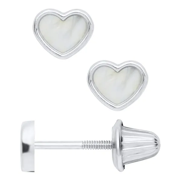 1(713) 802-1977Sterling Silver Heart Mother of Pearl Children's Earrings