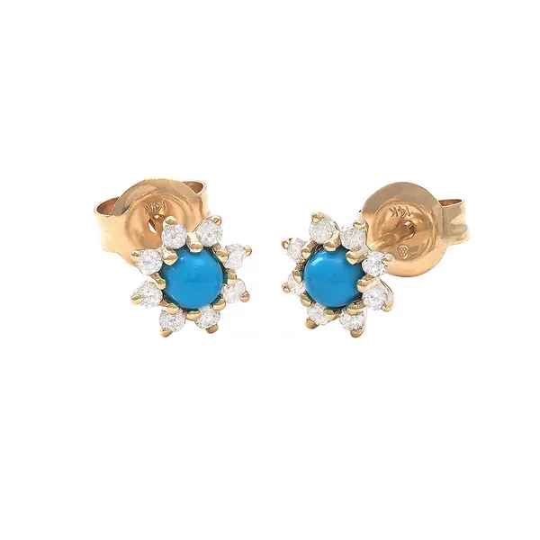 1(713) 802-197714KY Gold Flower Turquoise & Diamond Stud Earrings
