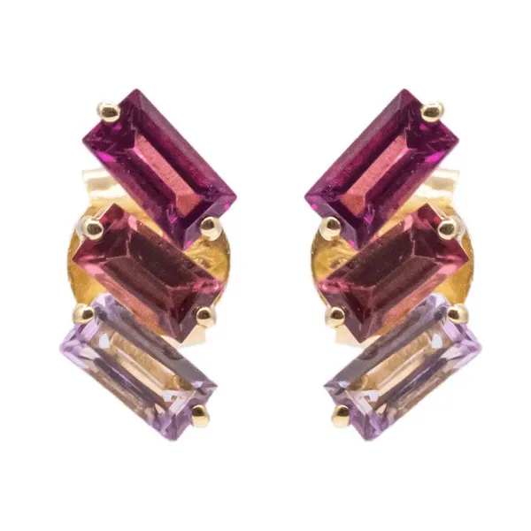 1(713) 802-197714KY Rhodolite, Pink Amethyst, & Pink Tourmaline Ombre Fan Earrings