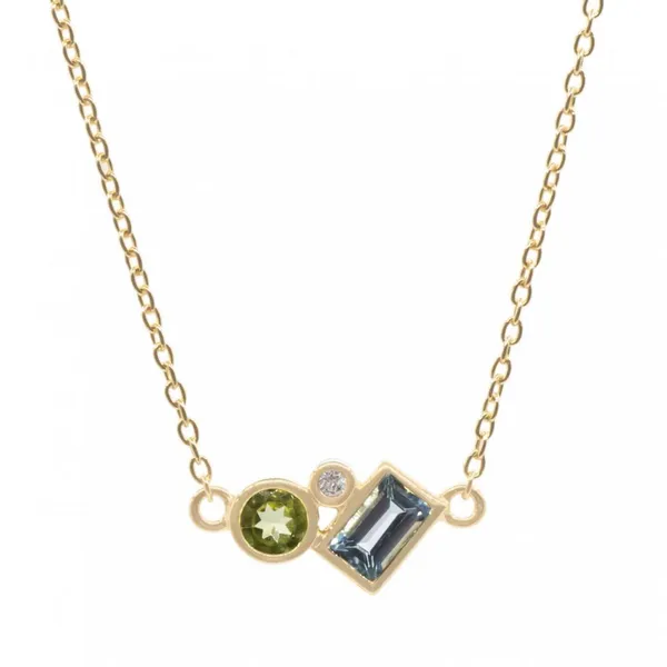 1(713) 802-197714KY Blue Topaz, Peridot, & Diamond Cluster Necklace 16"-18"