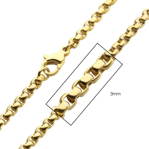 1(713) 802-19773mm 18KT Gold IP Titanium Box Chain Necklace - 24"