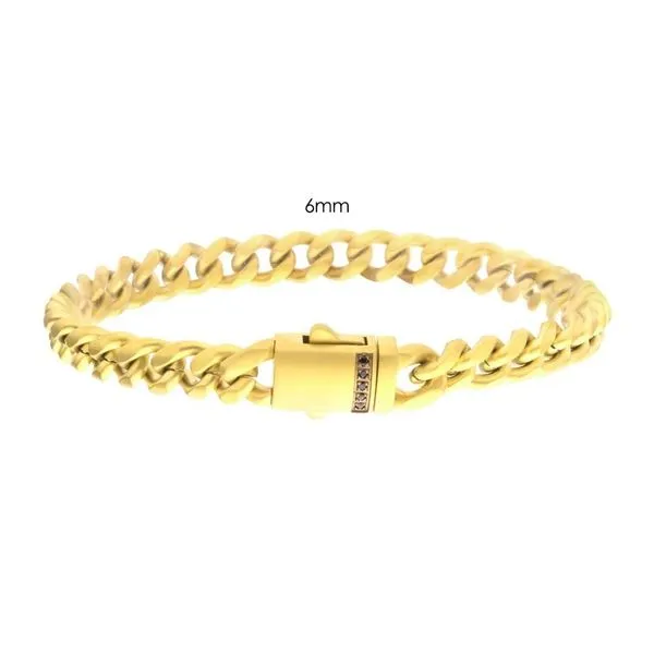 1(713) 802-19776mm 18Kt Gold IP Steel Matte Finish Miami Cuban Chain Bracelet with Genuine Black Sapphires - 8"