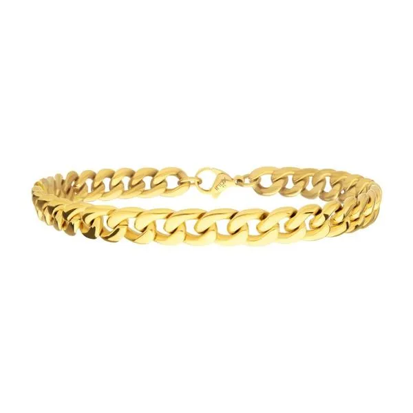 1(713) 802-19777.4mm 18KT Gold IP Titanium Curb Chain Bracelet - 8"