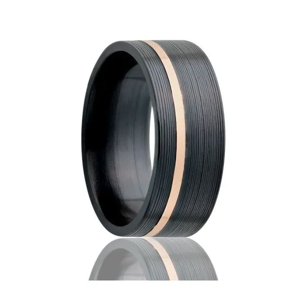 1(713) 802-19778mm Zirconium Pipe Cut 14K Rose Gold Offset Inlay