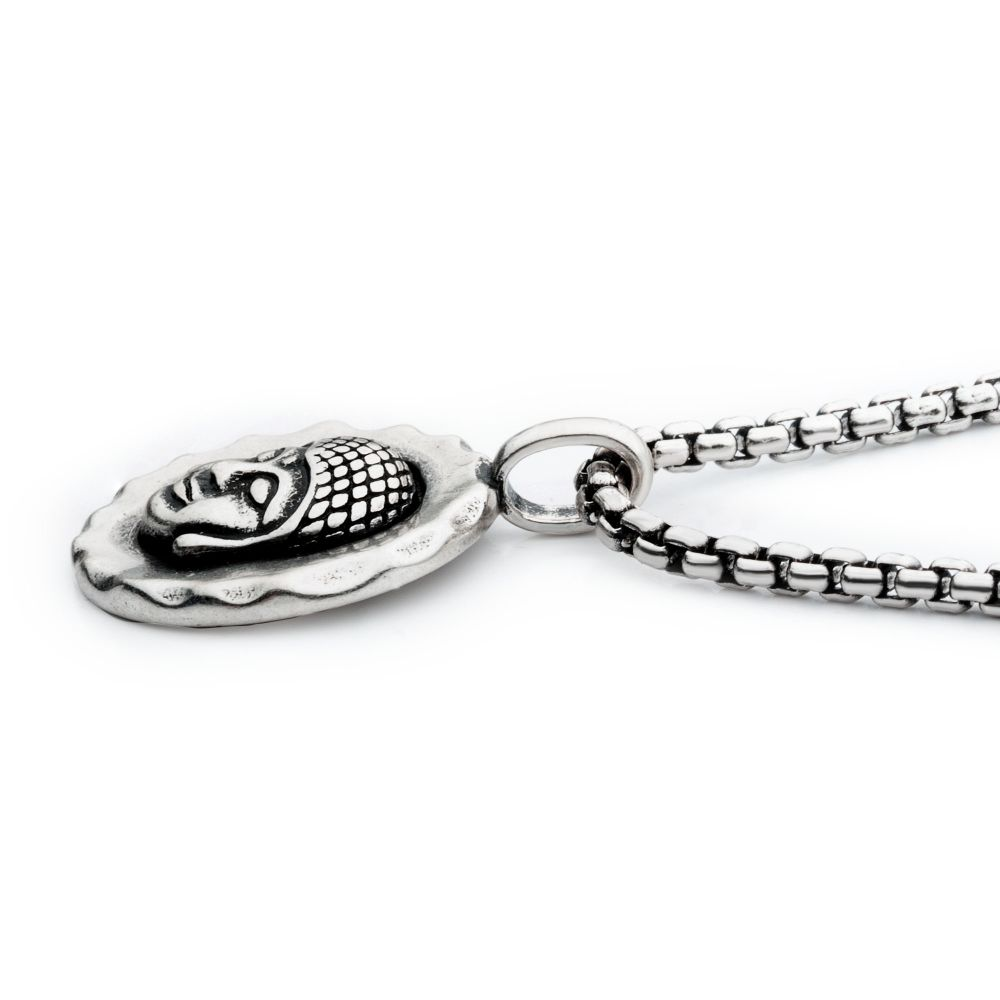 1(713) 802-1977925 Silver Oxidized Buddha Head Pendant with Box Chain 20"+2"