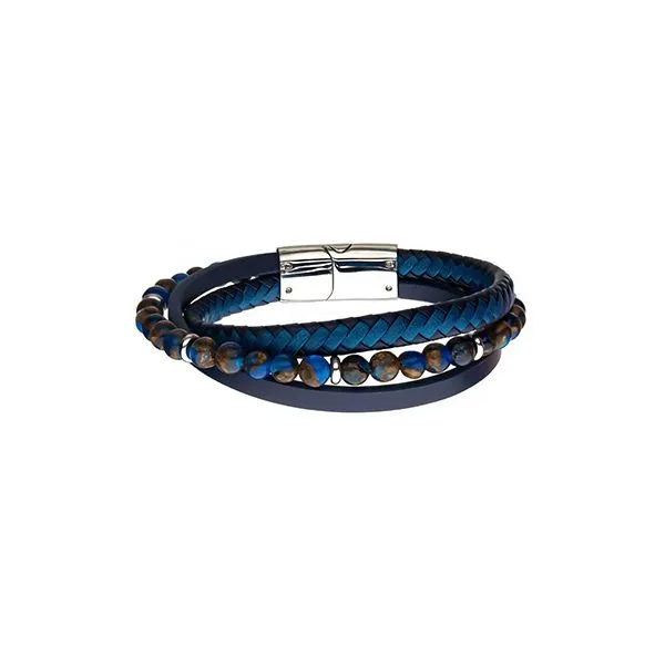 1(713) 802-1977Blue & Brown Beads with Blue Leather Layered Bracelet . 8" + 1