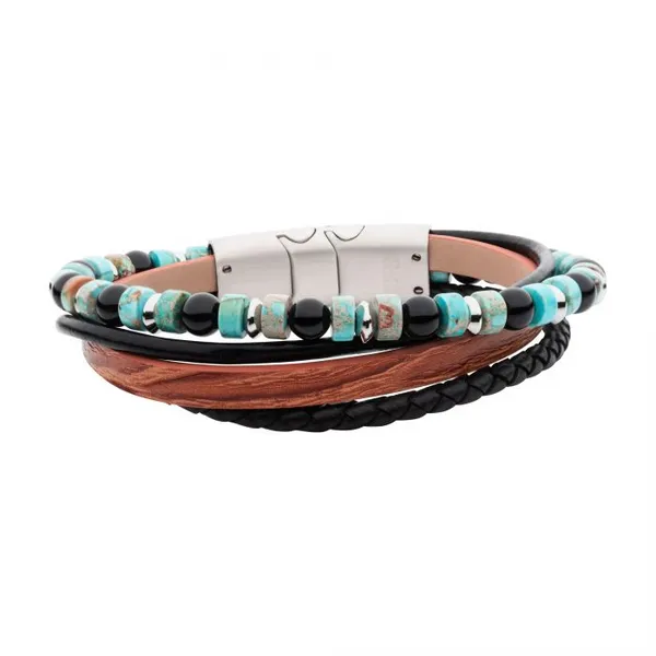 1(713) 802-1977Brown & Black Leather with Black Onyx & Green Emperor Stone Bead Multi-Strand Bracelet