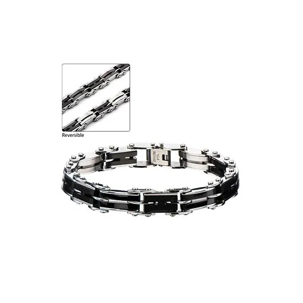 1(713) 802-1977Stainless Steel & Black IP H-Link Reversible Bracelet with Fold Over Clasp Bracelet, 7.75" + 1