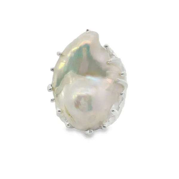 1(713) 802-1977Sterling Silver Coral Baroque Pearl Ring