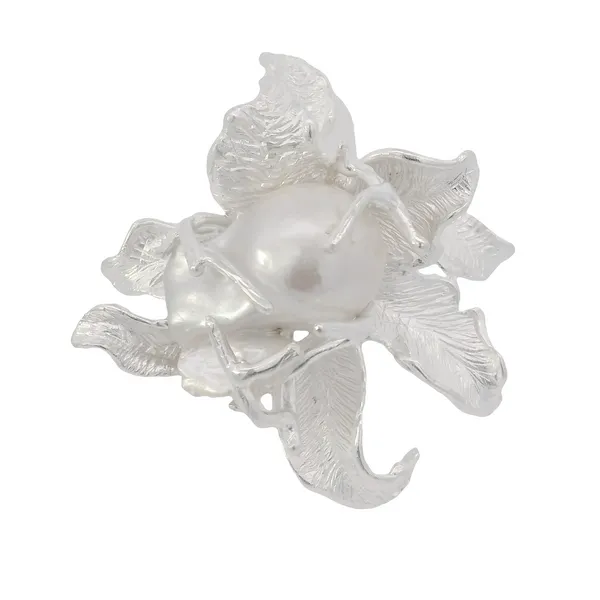 1(713) 802-1977Sterling Silver Flower Baroque Pearl Ring