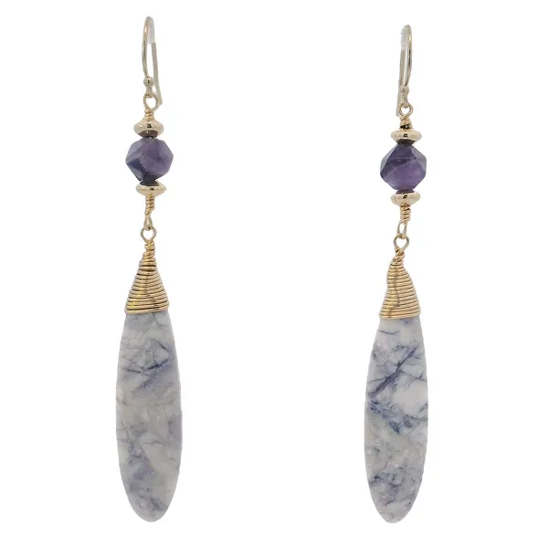 1(713) 802-197714KYGold Filled Purple Tiffany Jasper and Amethyst Dangle Earrings