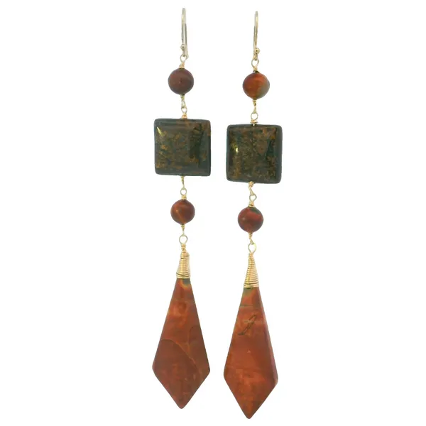 1(713) 802-197714KYGold Filled Red Creek Jasper Dangle Earrings with Accent Beads