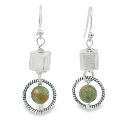 1(713) 802-1977Sterling Silver Turquoise Dangle Earrings w/Cube Accents