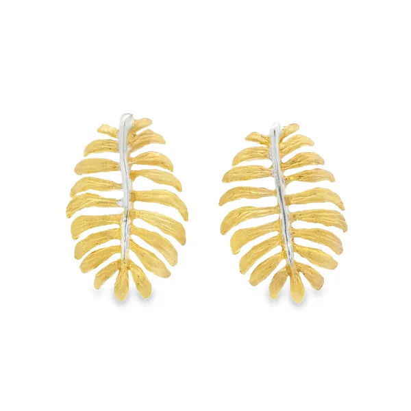1(713) 802-1977S.S. GP Two Tone Fern Leaf Stud Earrings