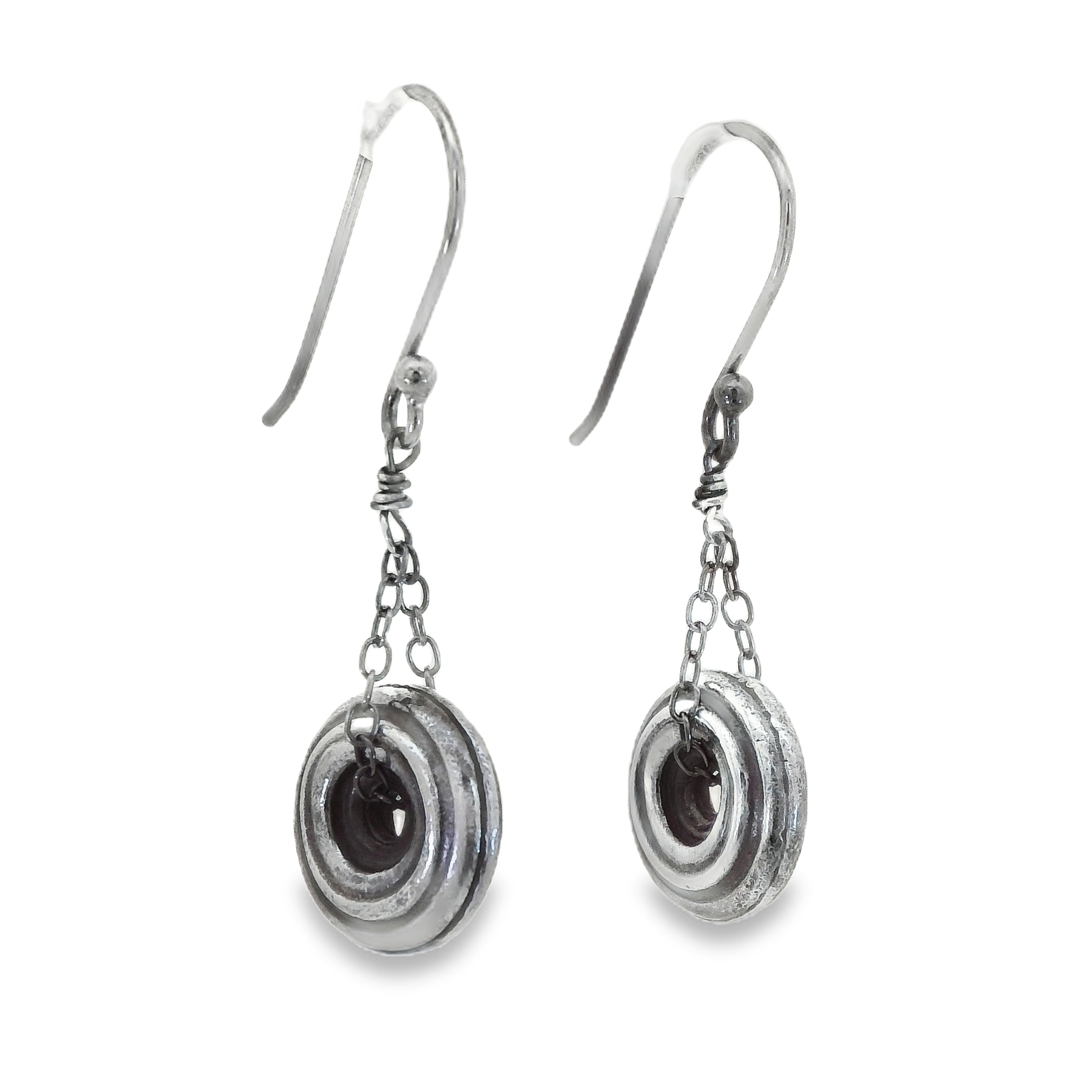 1(713) 802-1977Sterling Silver Black Rhodium Dangle Disc Earrings