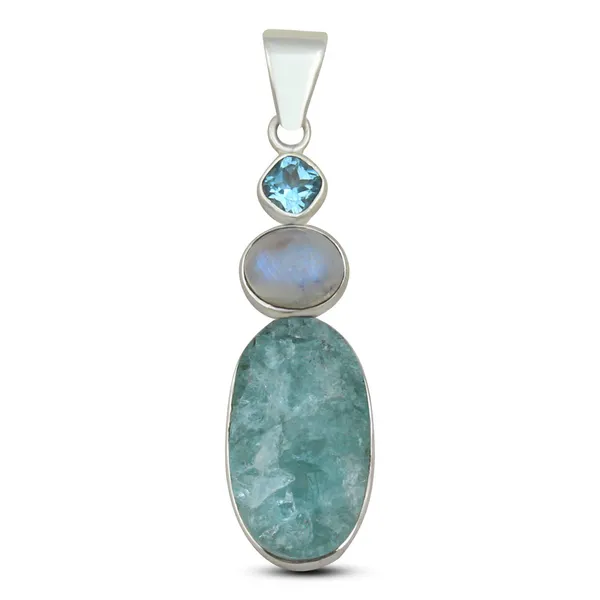 1(713) 802-1977Sterling Silver Aquamarine, Rainbow moonstone, Blue Topaz Pendant