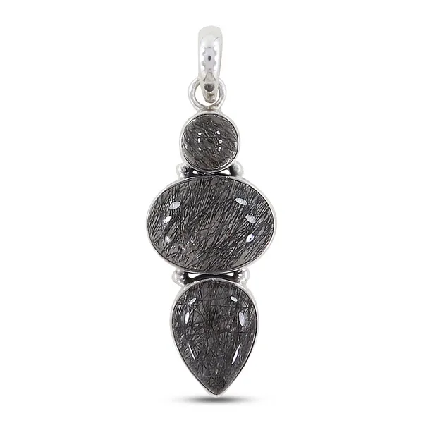 1(713) 802-1977Sterling Silver Black Tourmalated Quartz Pendant
