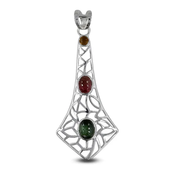 1(713) 802-1977Sterling Silver Green and Pink Tourmaline Pendant