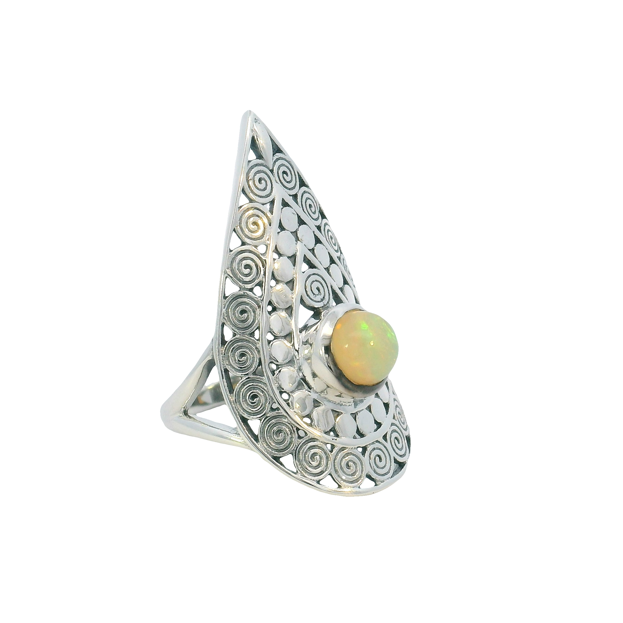 1(713) 802-1977Sterling Silver Large Leaf Ethiopian Opal Ring - Size 6
